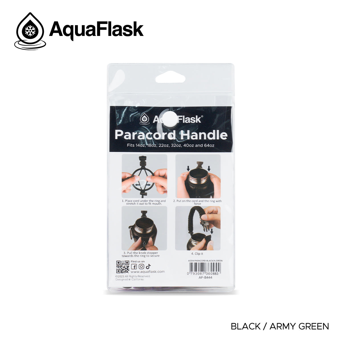 AquaFlask Paracord handle es una cuerda de transporte trenzada y duradera. Ofrécele a tu botella Aquaflask un extra de seguridad y agarre ya sea en tus trekkings o simplemente en tus días de camping mejorando el estilo y la funcionalidad.
